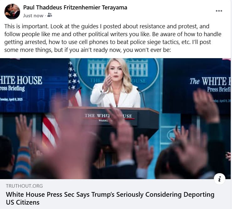 Usually I apologize for my political rants, but Jesus... I find it hard to believe you're not as dismayed by this as I am. I’m not surprised, that’s true. But earlier in my life, I thought I'd die before I saw one president destroy the 1st Amendment and commit genocide, then hand that power to a numbskull tyrant who's planning on shredding the constitution and arresting Americans and deporting them for exercising their 1st Amendment rights.